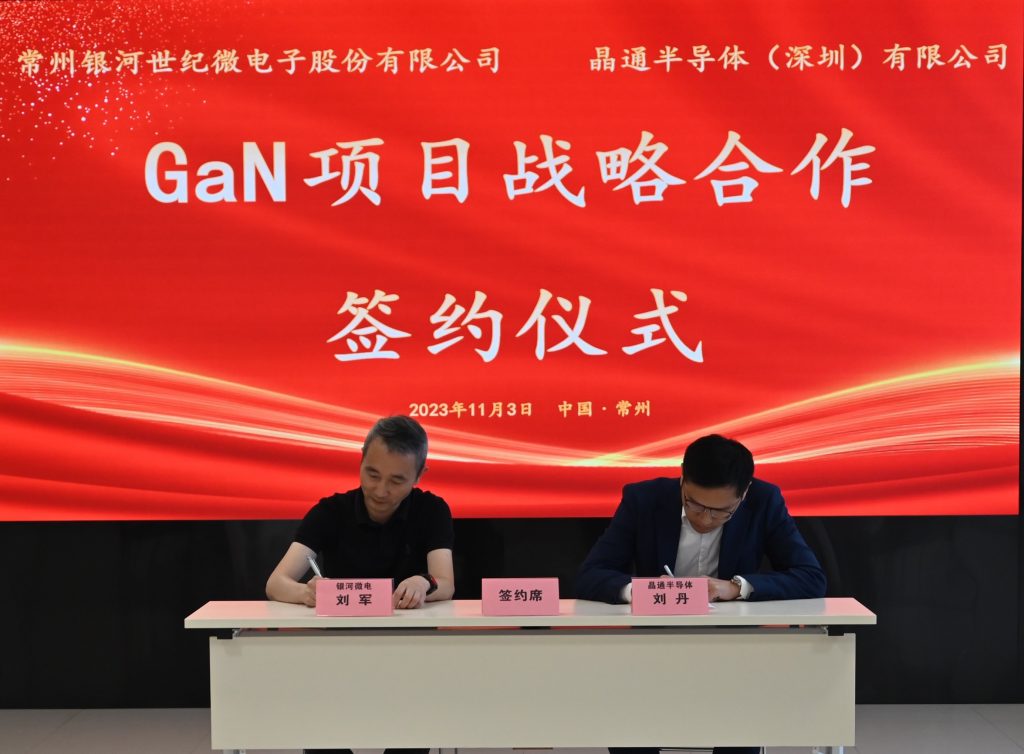2023年11月3日上午,在上海聚源聚芯集成電路產業(yè)股權投資基金中心的見證下,我公司與晶通半導體(深圳)有限公司在常州舉行了GaN項目戰(zhàn)略合作簽約儀式。常州銀河世紀微電子股份有限公司董事長楊森茂、總經理劉軍及晶通半導體(深圳)有限公司總經理劉丹等人員出席簽約儀式。